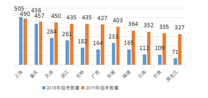2.招录人员范围广,无开考比例要求,竞争压力比公务员小。高校毕业生和社会人员都可以参加,岗位只要有人报名就可以正常参考, 19年参考人数25万,招录人数19523,竞争压力比国省考小的多可参照图一,图二,图三的具体情况。